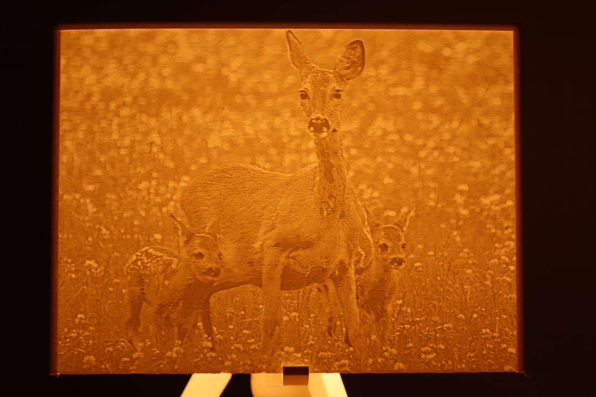Ditt foto 3D-printas som en litofan i hög kvalitet (PLA-plast) och monteras på en lampfot. När lampan tänds framträder bilden tydligt i varmvitt ljus och ger en levande, detaljrik känsla. Litofanlampan är tänkt att stå på ett bord, hylla eller nattduksbord och blir en vacker inredningsdetalj både dag och kväll.